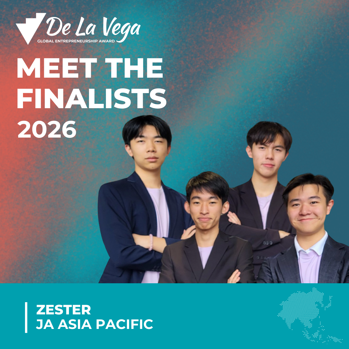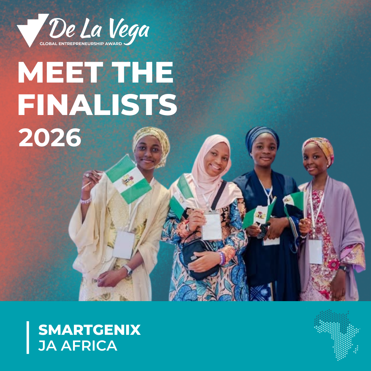 Each year, the De La Vega Global Entrepreneurship Award recognizes the very best of JA young entrepreneurs. JA’s only global student award brings together winners of the six regional Company of the Year competitions to compete in a global showcase of innovation, resilience, and leadership. To be named a finalist is an extraordinary accomplishment: each team has risen above thousands of peers to represent their region on the world stage.