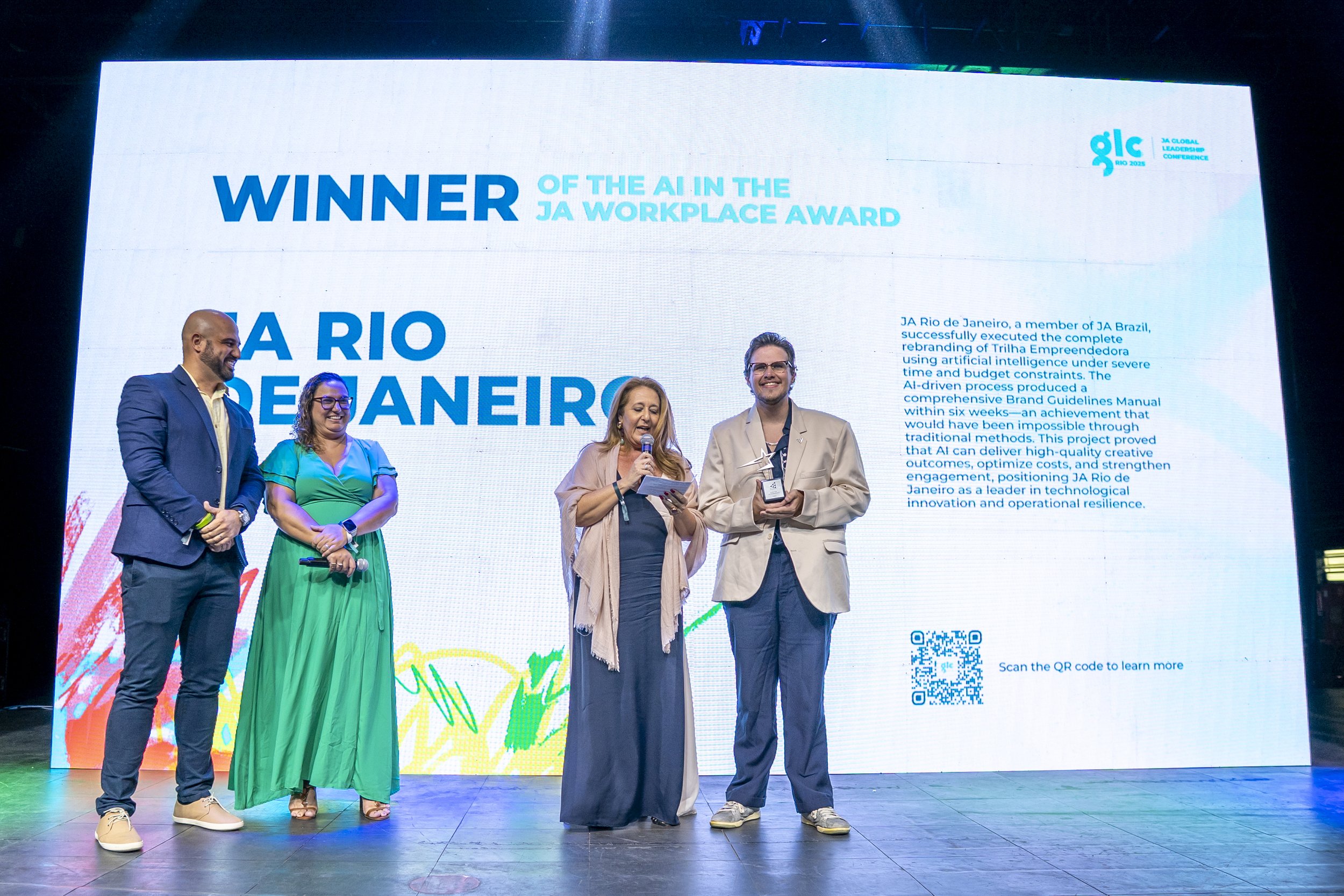 JA Rio de Janeiro, a member of JA Brazil, successfully executed the complete rebranding of Trilha Empreendedora using artificial intelligence under severe time and budget constraints. The AI-driven process produced a comprehensive Brand Guidelines Manual within six weeks—an achievement that would have been impossible through traditional methods. This project proved that AI can deliver high-quality creative outcomes, optimize costs, and strengthen engagement, positioning JA Rio de Janeiro as a leader in technological innovation and operational resilience.