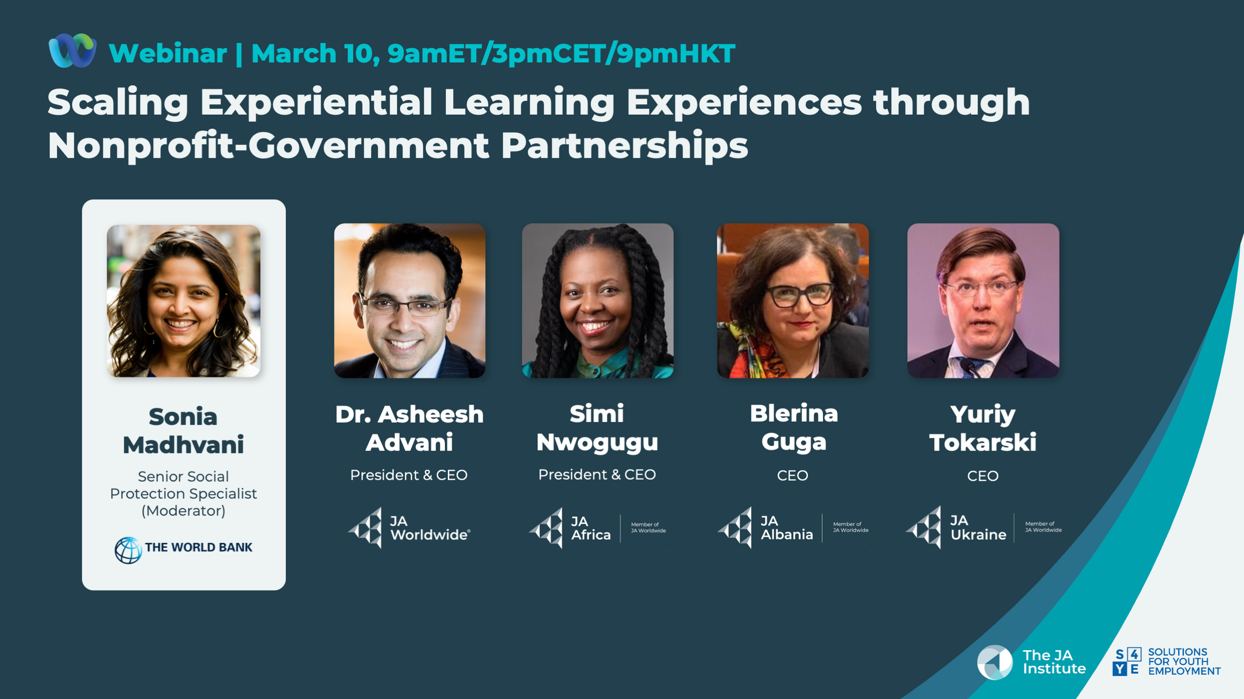 Join the World Bank panel discussion with JA leaders on scaling through nonprofit–government partnerships.